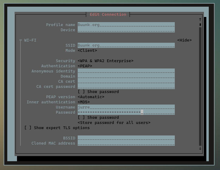 The RADIUS server itself runs in an LXC container on my production cluster, making it fully integrated with my infrastructure. This setup ensures it’s always on, highly available, and easy to maintain. I also ensured that the container has access to my existing LDAP directory (ou=people,dc=buunk,dc=org), so it can verify user credentials and check group membership.